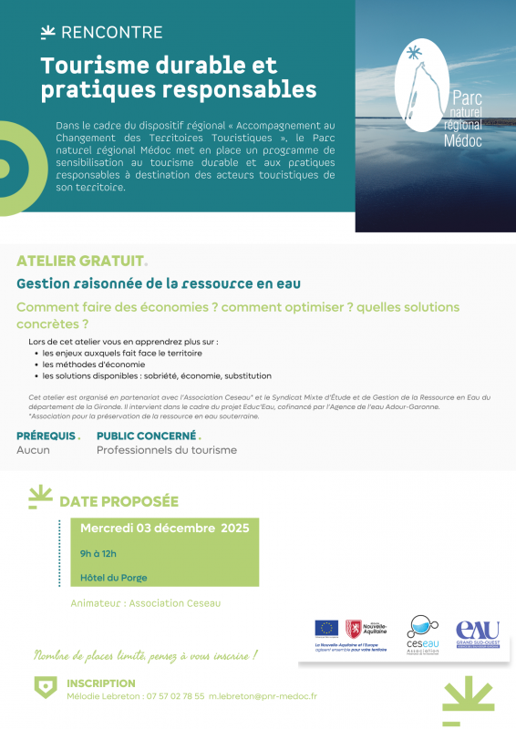 📍Atelier gratuit, ouvert à tous les acteurs du tourisme local, et animé par l’association Ceseau et le Parc naturel régional Médoc.